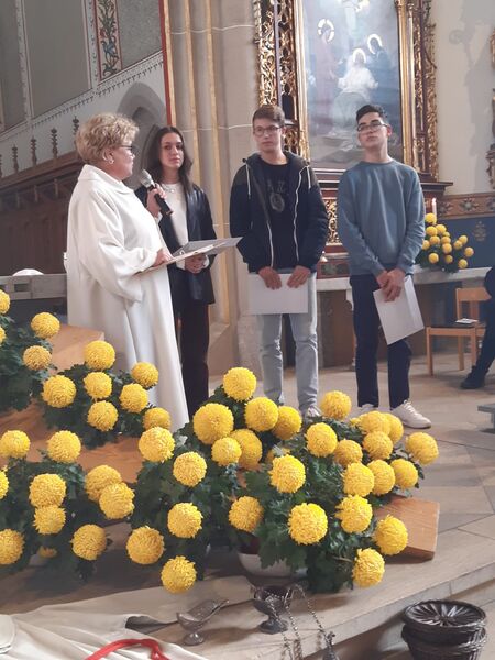Eine frohe Botschaft ist aber auch, dass junge Menschen in ihr Leben und in die Welt hinausziehen und so wurden in der gleichen Feier an der erfreuliche 2/3 der 27 aktiven Ministrierenden anwesend waren, vier Ministrierende verabschiedet. Marvin Mock, Raphael Alder, Laura Mittrucio und Lena Walpen wurde ihr zum Teil langjähriger Dienst von Pfarreileiterin Brigitta Schmid verdankt und mit einem kleinen Geschenk der Abschied leichter gemacht.