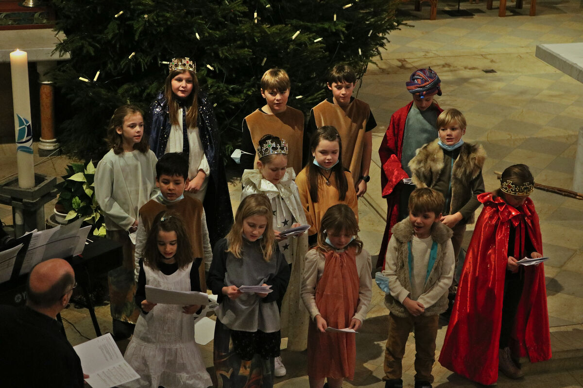 Sie haben sich zur Einstimmung auf die Heilige Nacht zusamemngefunden und die Freude war gross, eine aufgestellte Kinderschar singen und spielen zu hören. Die Primarschulkinder haben sich mit der katholischen Pfarreileiterin Brigitta Schmid, dem evangelischen Pfarrer Martin Heimbucher und ihrer Katechetin Beatrice Bühler mit dem Minimusical "De Stern vo Bethlehem" auf diesen speziellen Abend vorbereitet. Auch wenn Absenzen wegen Coronaquarantäne die eine oder andere Improvisation nötig machten, tat das dem Engagement der Kinder keinen Abbruch. Ganz im Gegenteil, sie waren engagiert und mit Freude beim Singen und Spielen dabei.