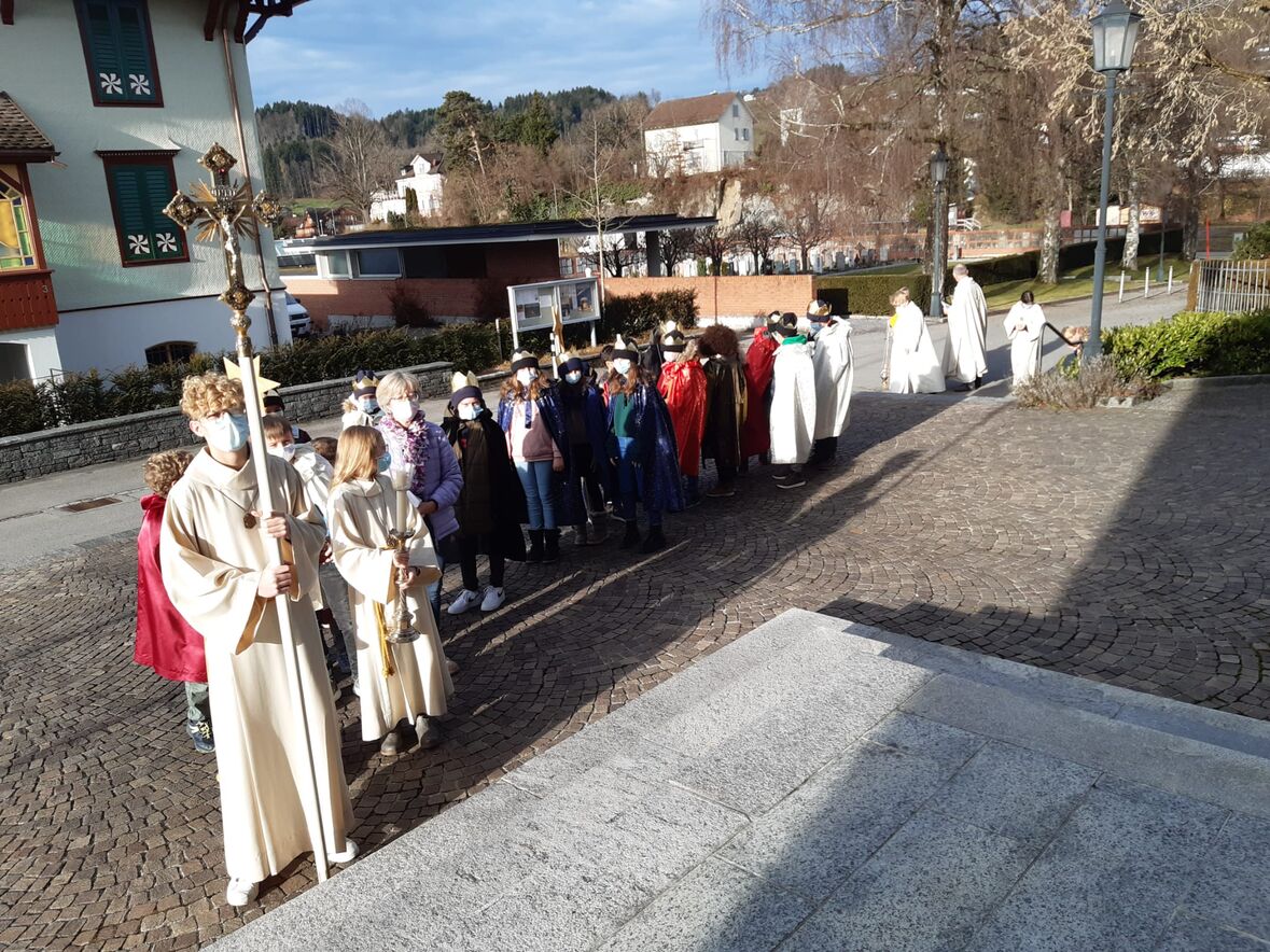 Am Sonntagmorgen 3. Januar 2022 wurden bei einem festglichen Gottesdienst zahlreiche Sternsingerinnen und Sternsinger gesegnet und zu ihrem Dienst ausgesandt. Gleich nach dem Gottesdienst haben sie den Segen ins das Alterszentrum Senevita Wisental getragen und damit vielen zum Jahresanfang eine grosse Freude gemacht.