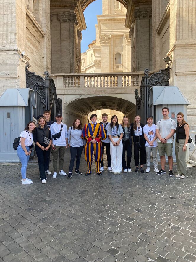 Vom 10. Bis 15. Oktober durften wir mit 11 ehemaligen Firmandinnen und Firmanden nach Rom reisen. Wir besuchten die Lateranbasilika, nahmen an der Generalaudienz von Papst Franziskus teil, erkundeten das Quartier der Schweizer Garde, spazierten durch das Kolosseum und warfen Münzen in den Trevi Brunnen. Wir durften eine Woche das Leben teilen und miteinander geniessen. Es wurden viele spannende und tiefe Gespräche über das Leben geführt und Freundschaften entstanden oder vertieften sich.