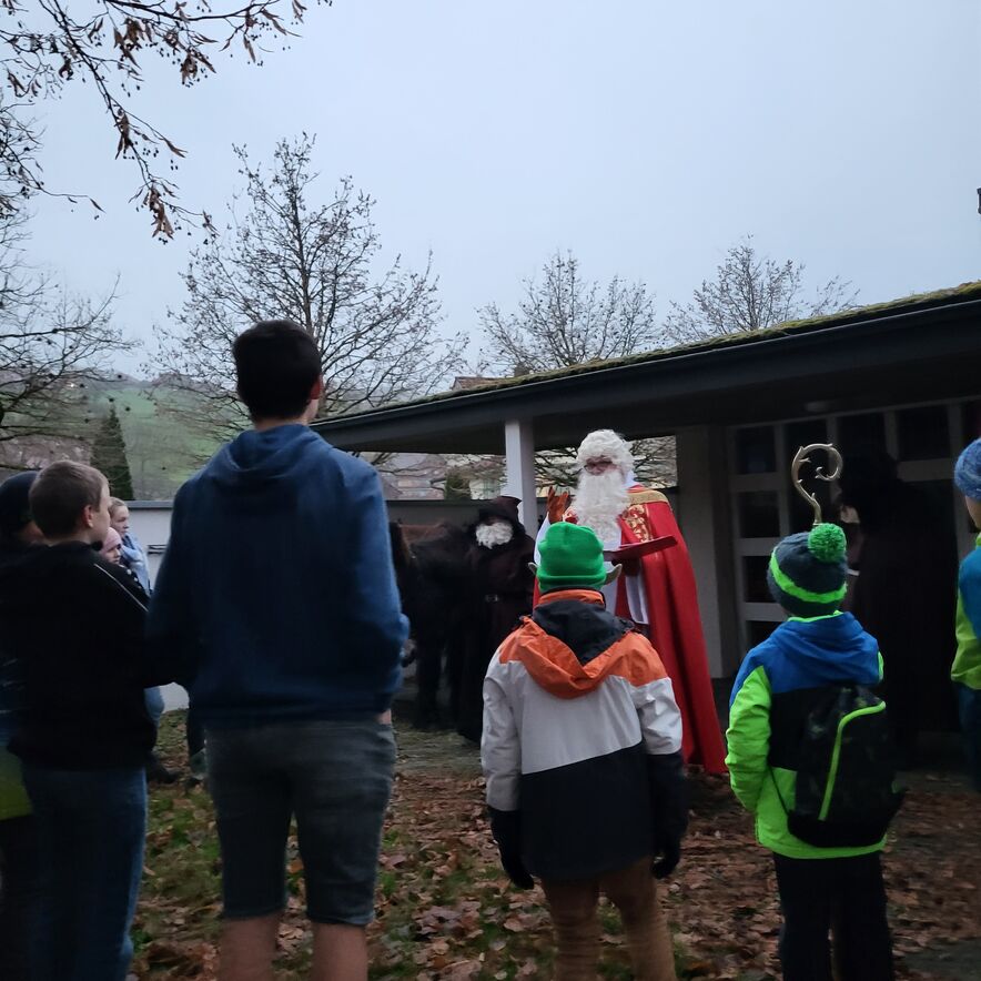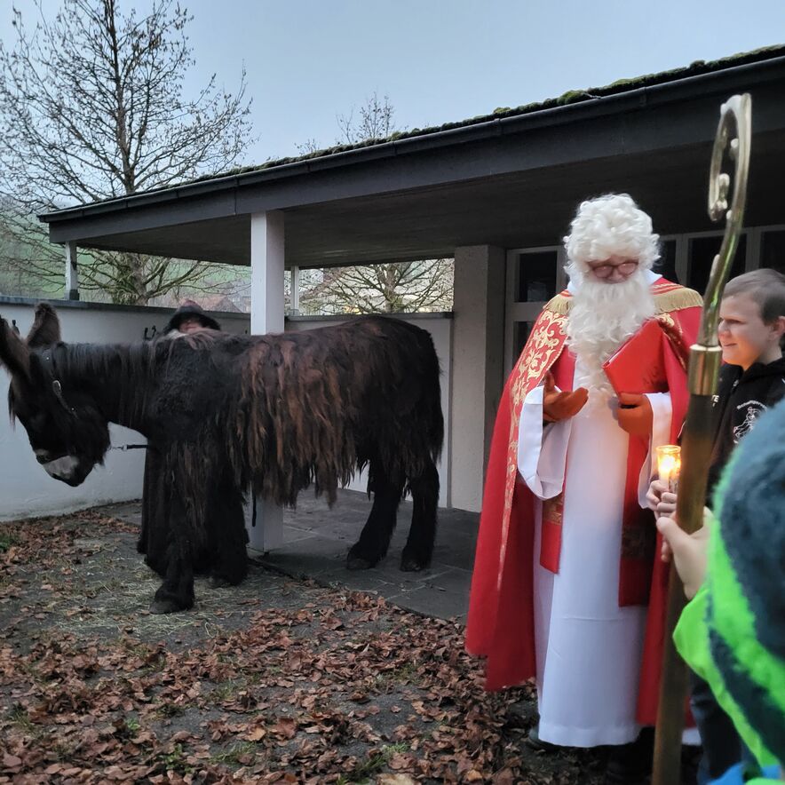 Am Sonntagnachmittag, 4. Dezember, versammelte sich eine bunte Schar von Ministranten und Ministrantinnen aus Abtwil, St. Josefen und Engelburg im Innenhof vor der Kapelle in St. Josefen - warum sie das taten war schnell klar, sah man doch den Kopf einer Grosseselin vorlaut über die Mauer schauen.
