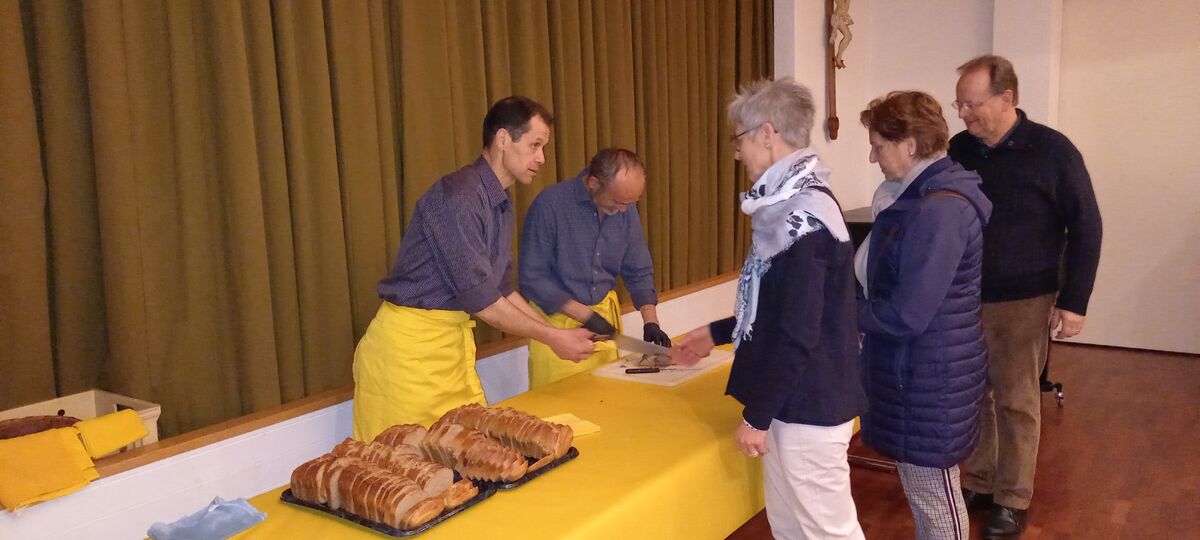 Das war auch in diesem Jahr so. Die Feier der Osternacht, die am Osterfeuer begonnen hat und in der Kirche mit einer Eucharistie und einem Licht- und Wasserritual, die an die Auferstehung Jesu erinnern, gefeiert wurde, fand im Pfarreiheim einen gemütlichen Abschluss. Der Pfarreirat organisiert jeweils das Fleisch und alles rund um das Essen des Osterlamms und auch für Getränke und gute Stimmung war gesorgt.