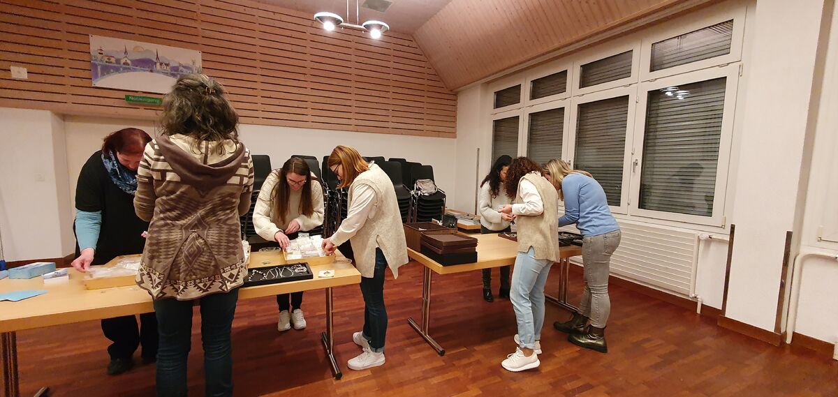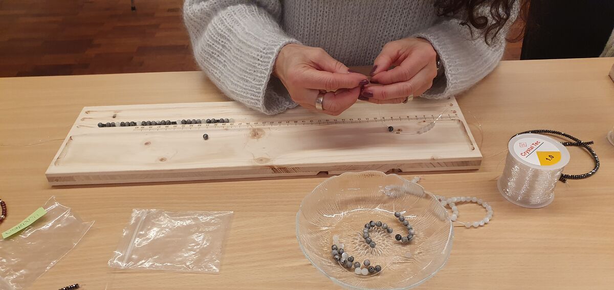 Um den Geist für die Auswahl der Edelsteine einzustimmen, führten wir zu Beginn eine kurze Klangschalenmeditation durch. Anschliessend offenbarte uns Sonja Graf ihre grossartige Auwahl an Edelsteinen. Mit der Qual der Wahl fanden alle ihre persönlichen Heilsteine und fertigten Arm- und Halsbänder an.