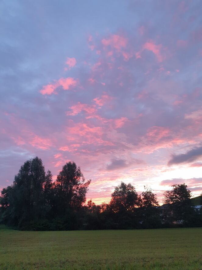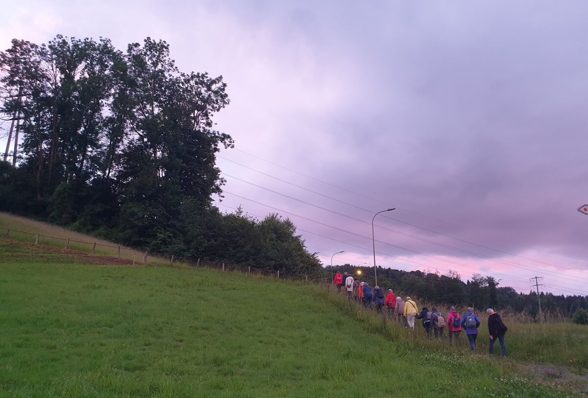 Dieser meditative Weg führte uns bei wunderschöner Morgenröte von der Pfarrkirche zum Gübsensee.