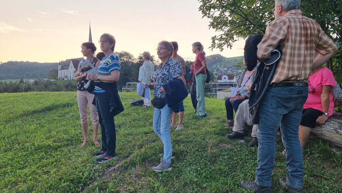 Am Donnerstagabend, 22. August 2024 machten sich 15 Frauen und 1 Mann auf den Weg zum ökumenischen Abendbummel von der katholischen Kirche durch das Dorf Abtwil unter dem Motto: Siehe wir kommen beim Sinken der Sonne, mit Texten von Madeleine Delbrel. Gemeinsam durften sie einen Wegabschnitt, unter der Gestaltung von unserer Seelsorgerin Brigitta Schmid Pfändler miteinander teilen. Am Schluss endete der Weg bei Sonnenuntergang vor der katholischen Kirche.