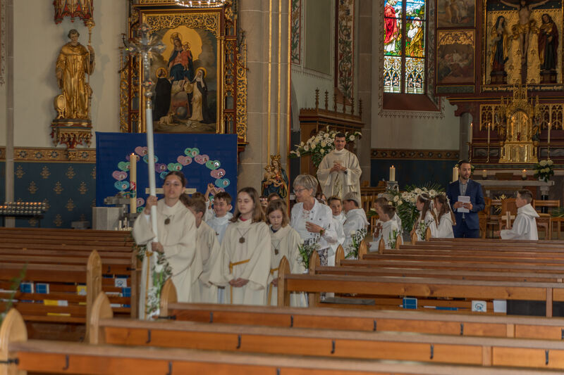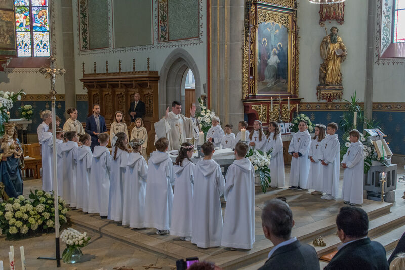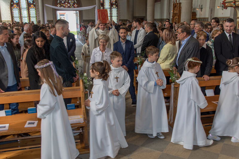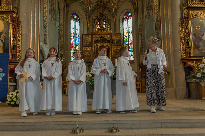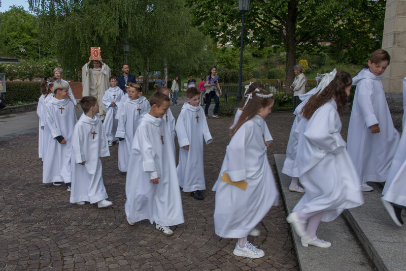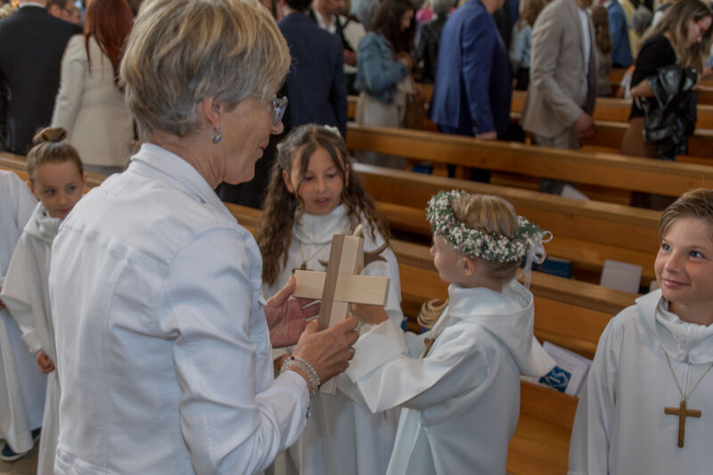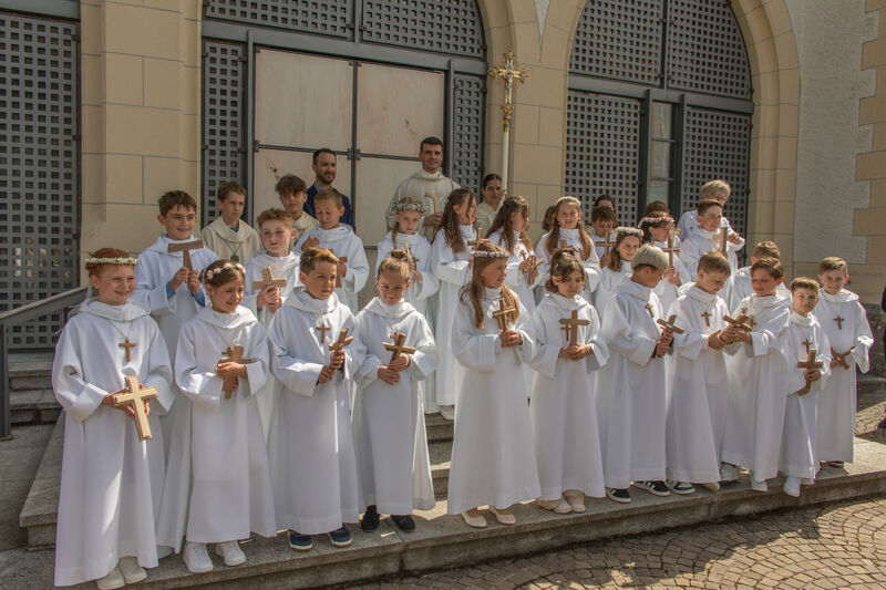 Am Weissen Sonntag, 4. Mai 2025 feierte eine lebhafte Gruppe von 25 Kindern bei bester Laune und mit zahlreichen Gästen, zusammen  mit ihren Familien und Angehörigen aus unserer Pfarrei unter dem Motto "Man sieht nur mit dem Herzen gut" in einem Festgottesdienst ihre Erstkommunion.