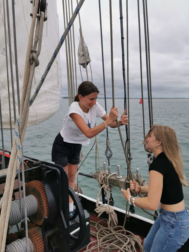 Gegen Mittag hiess es dann; Leinen los! Zusammen mit unserem Matrosen Ruud und Skipper Daniel startete unser Abenteuer. Die Jugendlichen waren von Beginn an mit Begeisterung dabei und packten tatkräftig mit an. Schon nach kurzer Zeit waren wir ein eingespieltes Team. In dieser Woche sind wir als Gruppe stark zusammengewachsen. Wir erlebten viele unvergessliche Momente. Wir probierten das Sprungtuch aus, unternahmen eine Fahrradtour und erkundeten kleine Städtchen. Natürlich durfte auch ein Strandbesuch nicht fehlen. An einem Abend gingen wir gemeinsam ans Meer, spielten Fussball, schauten in die Sterne oder genossen einfach die gemeinsame Zeit.